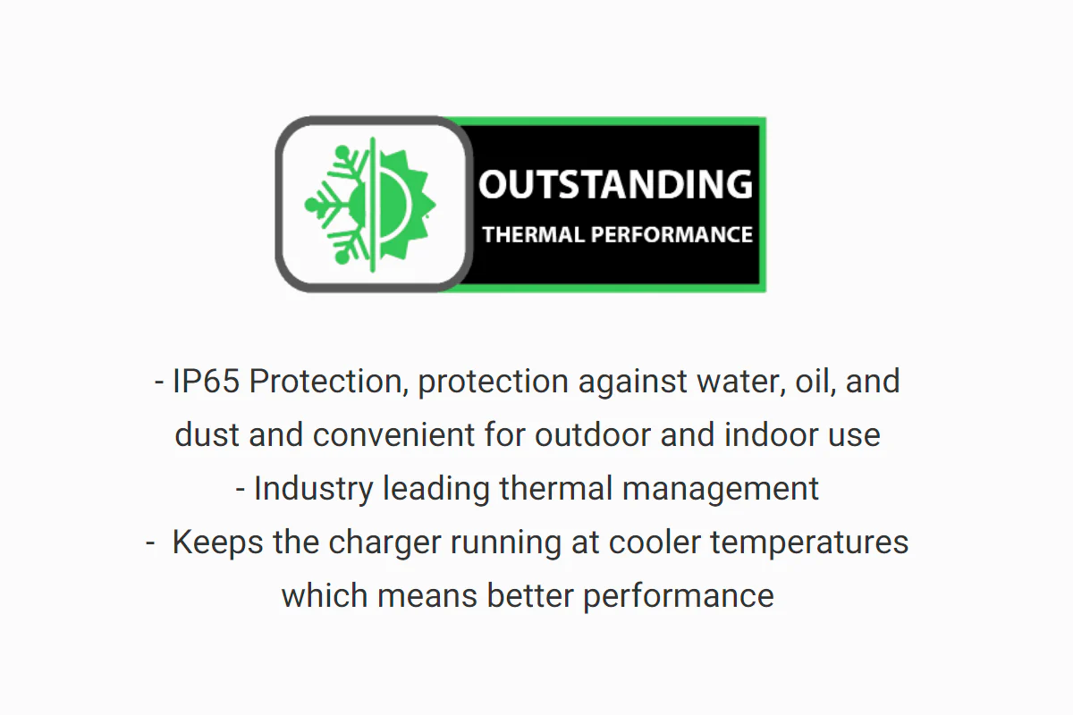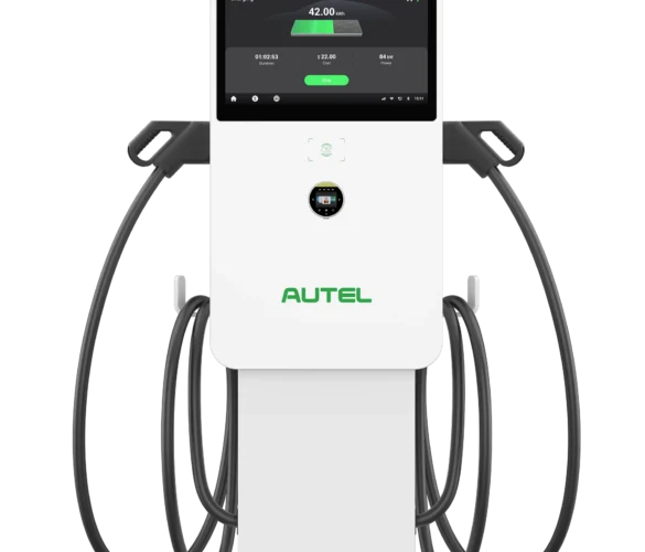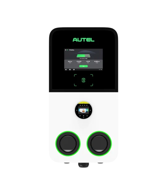 Cu 22 kW per port, acest încărcător este lider în industrie prin încărcarea rapidă a 2 vehicule simultan și generează o autonomie de 140 km în 60 de minute.
